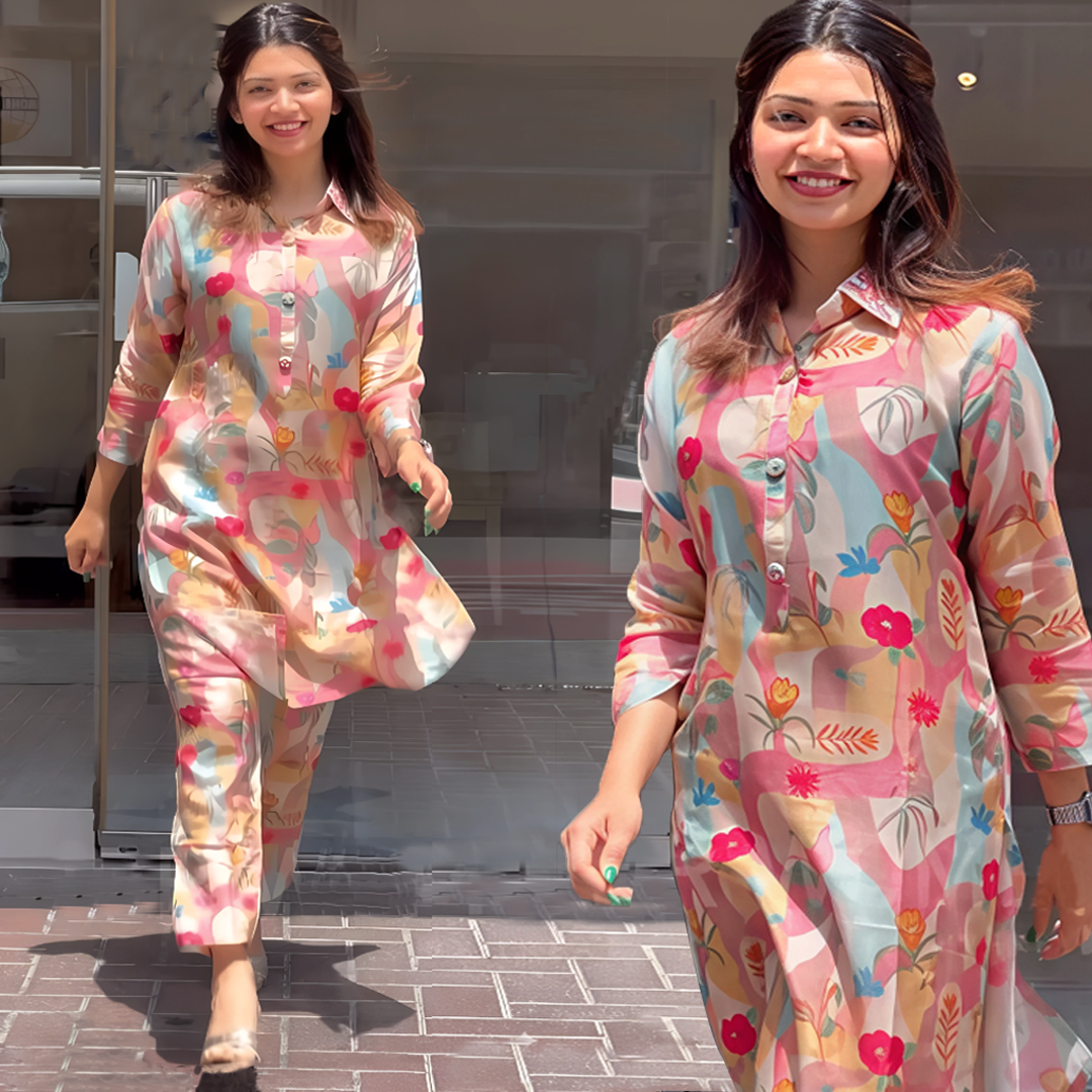Step into effortless elegance with the Floral Breeze Co-Ords. Designed with soft pastel hues and playful floral prints, this outfit is perfect for sunny days and casual outings. Crafted from lightweight, breathable fabric, it keeps you comfortable while adding a touch of chic sophistication. Pair it with minimal accessories for a fresh, modern look that never goes out of style.
